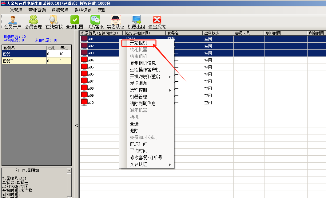 1. 选择机器---开始租机