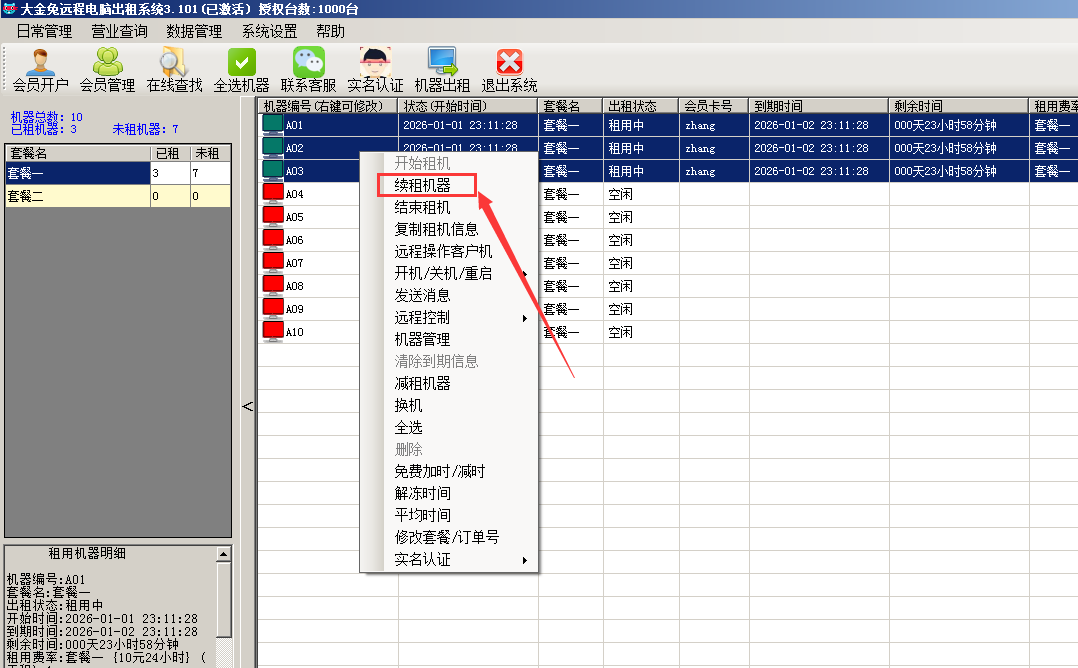 3.  客户机器即将到期了, 可以续租机器