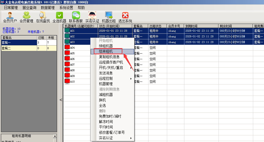4  机器需要停租,  可以结束租机